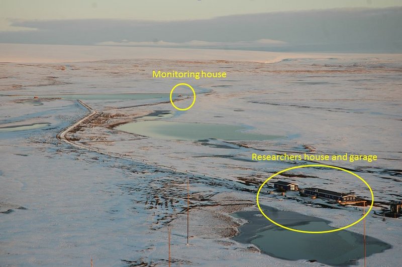 Two 20 m cores in the ground are established to measure the temperature profile in order to determine; seasonal behaviour, the depth of the active layer and the trend of these over the years to come.